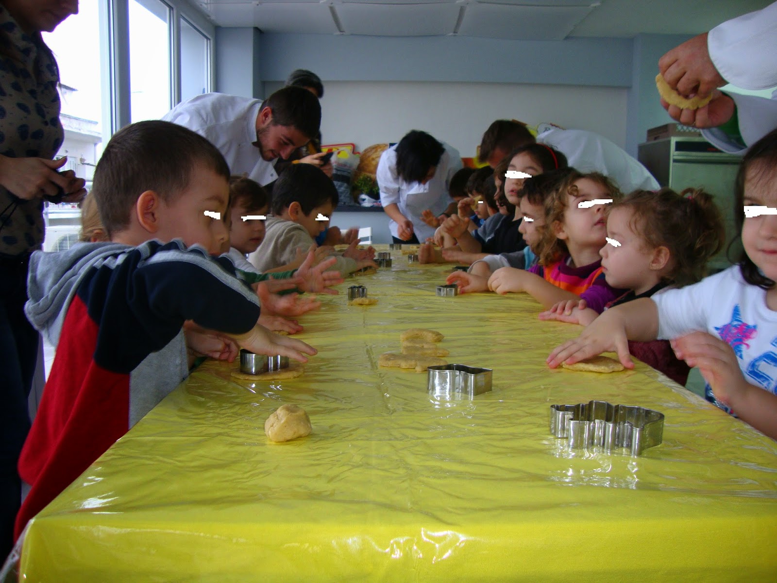 Με την βοήθεια του Σεφ της σχολής Τάσο Αξαρλή και των φοιτητών της σχολής μαγειρικής τα μικρά ζουζούνια κάνανε κουλουράκια με βρώμη !!!